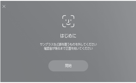に向かって正面を向き、顔だけが映るようにして、[開始]にタッチします。