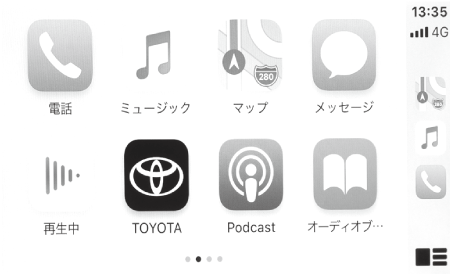 ]マルチメディアシステムの画面を表示します。再度、Apple CarPlayのホーム画面を表示する場合は、メインメニューの[
