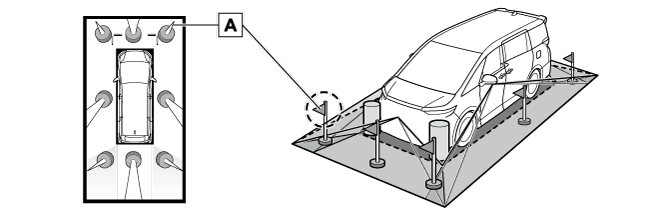 • 車両付近には死角があり、パノラミックビューモニターには表示されない領域があります。