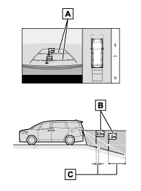 • 高い位置にある立体物(張り出しのある壁やトラックの荷台など)は、画面に映らない場合があります。周囲の安全を直接確認してください。
