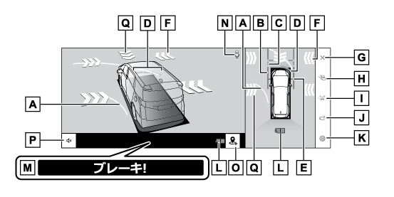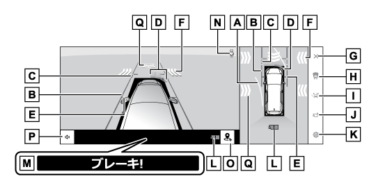 クリアランスソナーが障害物を感知したとき(シフトポジションがDまたはNのとき)に、自動で表示されます。
