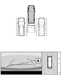 駐車時の安全確認を行うために、車両上方からの映像と後方カメラからの映像を表示します。