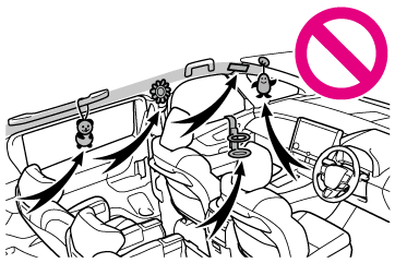 エアバッグがふくらむ場所を覆うようなアクセサリーを使用しないでください。エアバッグが作動する際、アクセサリーが干渉するおそれがあります。そのようなアクセサリーがエアバッグが正常に作動するのをさまたげ、システムを不能にしたり、またはエアバッグが誤って作動したりして、重大な傷害におよぶか、最悪の場合死亡につながるおそれがあります。