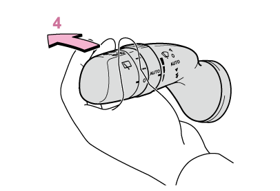 ウォッシャー液を出すレバーを前方へ押すとワイパーと連動してウォッシャーが作動します。カメラ洗浄システムも連動して作動します。※:カメラ洗浄システムについては、別冊「マルチメディア取扱説明書」を参照してください。