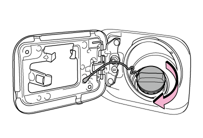 すぐに開けると、気温が高いときなどに、給油口から燃料が噴き出るおそれがあります。