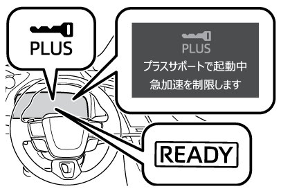 プラスサポートを使用するためには、プラスサポート用スマートキー(以下、サポキー)が必要です。プラスサポートおよびサポキーは販売店装着オプションです。