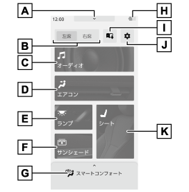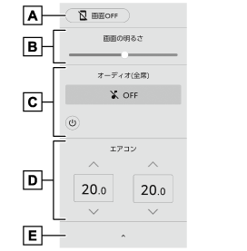 リヤアームレスト内のオペレーションパネルを使って、リヤのオーディオ・エアコン・シート・リラクゼーションシート・ランプの操作をすることができます。