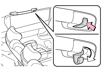 リヤサイドパネルにあるコートフックを使用するときは、スライドドアを開閉する際にドアへ引っかからないよう注意してください。
