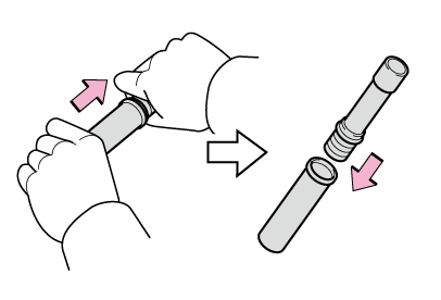 2. 本体をまわしながら抜き、本体を逆さにして挿し込む