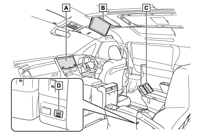 • リヤシートエンターテインメントシステムは、エンジンスイッチ<パワースイッチ>がACC、ON またはマルチメディアシステムの電源がONのときに使用できます。