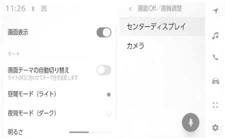 [画面テーマの自動切り替え]をOFFにしたとき、手動で昼間モードに切りかえることができます。