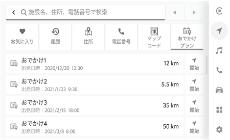 - スマートフォンからあらかじめ送信されたおでかけプランの地点のリストを表示します。