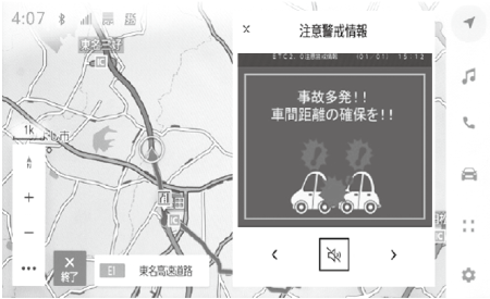 実際の音声や画面表示はITSスポットから提供されるものと異なることがあります。