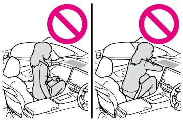 お子さまを助手席SRS エアバッグの前に立たせたり、ひざの上に抱いたりしない