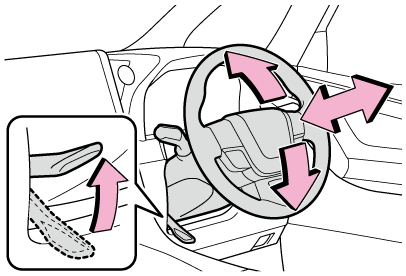 お好みのハンドル位置をドライビングポジションメモリーに登録すると、自動で調整されます。(→ドライビングポジションをポジションメモリーボタンに登録するには)