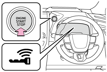 電子キーを携帯して次の操作を行うことで、エンジンの始動またはエンジンスイッチのモードを切りかえることができます。