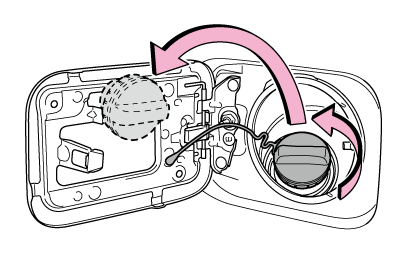 すぐに開けると、気温が高いときなどに、給油口から燃料が噴き出るおそれがあります。
