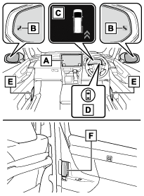 - ドアミラーインジケーター開いたドア(バックドアを除く)または降車した人と衝突する可能性がある車両・自転車を検知したときは、検知した側のドアミラーインジケーター(→表示灯一覧)が点灯します。