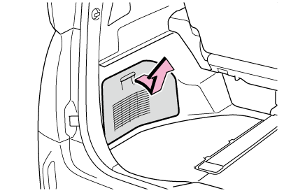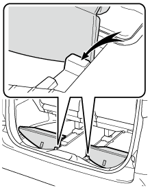 デッキボードを取りはずしたときは、走行前に必ずもとどおりに取り付けてください。取りはずしたまま走行すると、急ブレーキをかけたときなどにデッキボードや収納していたものが飛び出し、思わぬ事故につながるおそれがあり危険です。