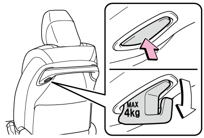 買い物フックの破損を防ぐために、4kg 以上のものをフックに吊り下げないでください。