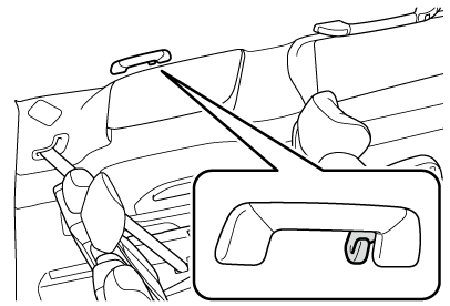 天井に取り付けられているアシストグリップは、走行中にシートに座っている状態で体を支えるときにお使いください。