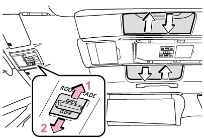 ルーフサンシェードを閉めるとき、異物の挟み込みを感知すると、作動が停止し少し開きます。