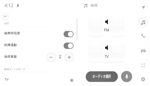 [後席オーディオモード]:後席ディスプレイで再生するオーディオソースを選択します。