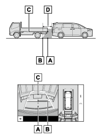 • 乗車人数、積載量、路面の勾配などにより、画面のガイド線の示す位置はかわります。必ず後方や周囲の安全を直接確認しながら運転してください。
