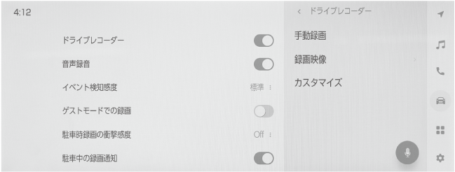 [ゲストモードでの録画]をONにすると、ゲストドライバーモード時の常時録画映像が、エンジンスイッチ<パワースイッチ>をOFFにするたびに削除されるようになります。手動録画、イベント録画のデータは削除されません。(→ドライバーの切りかえや登録をする)