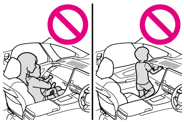 お子さまを助手席SRS エアバッグの前に立たせたり、ひざの上に抱いたりしない