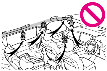 エアバッグがふくらむ場所を覆うようなアクセサリーを使用しないでください。エアバッグが作動する際、アクセサリーが干渉するおそれがあります。そのようなアクセサリーがエアバッグが正常に作動するのをさまたげ、システムを不能にしたり、またはエアバッグが誤って作動したりして、重大な傷害におよぶか、最悪の場合死亡につながるおそれがあります。
