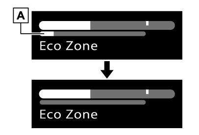 アイコンの強調表示後、マルチインフォメーションディスプレイ上のエコアクセルガイド(→エコアクセルガイド/エコジャッジ)の“アクセル操作の目安”(