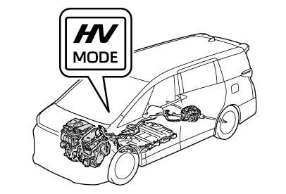 HVモード時は、ガソリンエンジンと電気モーターを併用して走行します。(→HV モード時)