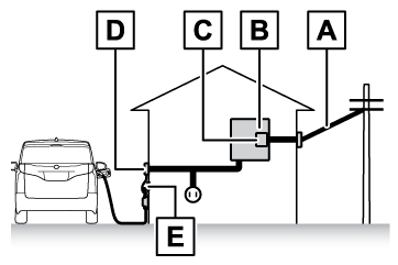 屋外で充電する場合は、軽負荷電動車両充電用コンセントに接続してください。