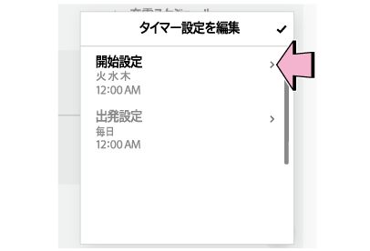 ご希望の曜日を選択することで、繰り返しタイマー充電が行われるように設定できます。(曜日を選択しない場合は、1回のみ充電が実施されます)
