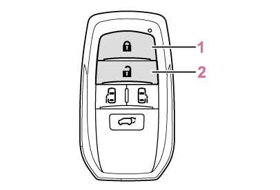 ワイヤレスリモコンを使用して、スマートエントリー&スタートシステムで解錠できるドアの設定を切りかえることができます。切りかえ操作は、車内または車から約1m 以内の範囲で実施してください。