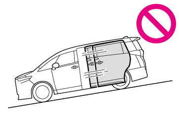この場合、傾斜した場所では、スライドドアが急に開いたり閉じたりするおそれがあるので、十分注意してください。