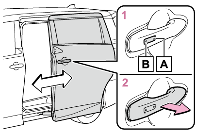 - ドアハンドルを引いて開閉するスライドドアを解錠してから操作してください。