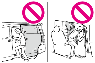 不意にスライドドアが動いたり、閉めるときに手・頭・首などを挟んだりするおそれがあります。