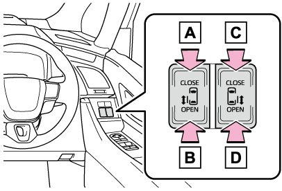 - 助手席側パワースライドドアを開閉する(押し続ける)スライドドアを解錠してから操作してください。