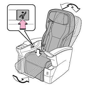 つまずいてけがをするのを防ぐため、車に乗り降りする際、オットマンを上げているときは格納してください。