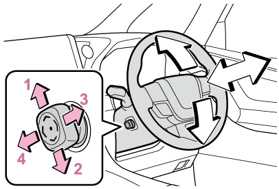 お好みのハンドル位置をドライビングポジションメモリーに登録すると、自動で調整されます。(→ドライビングポジションをポジションメモリーボタンに登録するには)