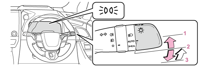 2 | LEDデイライト(→LEDデイライト機能)が点灯 | ヘッドランプ・スモールランプが点灯 |