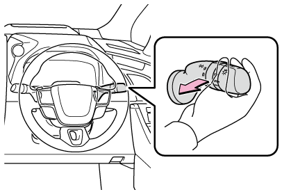 レバーを引いているあいだはハイビームが点灯しますが、レバーがもとの位置にもどるとしばらくのあいだロービームが点灯します。その後、再度アダプティブハイビームシステムが作動します。