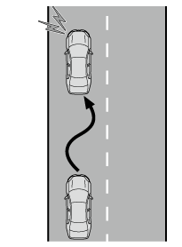 方向指示灯の点滅中であっても、となりの車線を走行中の車両と衝突する可能性があるとシステムが判断した場合、車線逸脱抑制機能が作動します。