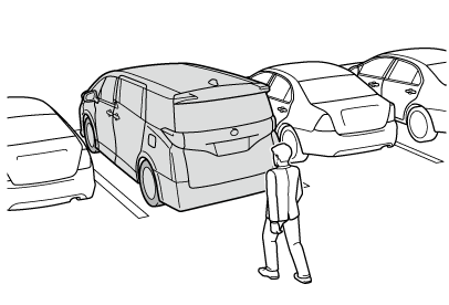 パーキングサポートブレーキ(後方歩行者)の検知範囲は、RCDの検知範囲(→歩行者を検知した場合)とは異なります。そのため、RCDが後方歩行者との接近をお知らせしても、パーキングサポートブレーキ(後方歩行者)は作動を開始していない場合があります。