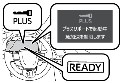 プラスサポートを使用するためには、プラスサポート用スマートキー(以下、サポキー)が必要です。プラスサポートおよびサポキーは販売店装着オプションです。
