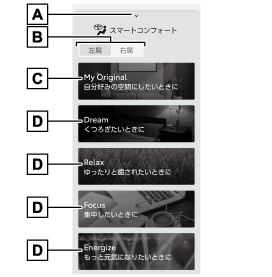 “Relax”、“Focus”、“Energize”は、あらかじめ登録された設定は異なりますが、設定できる項目は同じです。