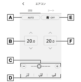 風量を増やすときは風量調整スイッチの“+”を選択するか、風量調整スイッチのアイコンを右へスライドします。風量を減らすときは風量調整スイッチの“-”を選択するか、風量調整スイッチのアイコンを左へスライドします。