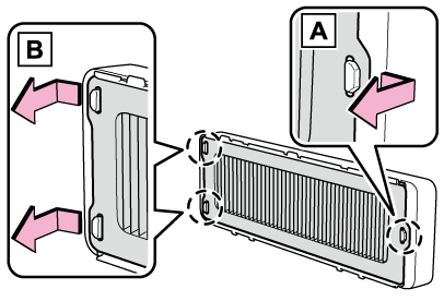 - フィルターを光にかざし、目づまりがないか確認するほこりや砂などを取り除ききれないときは、トヨタ販売店にご相談ください。